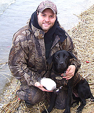 Proud owner Jason Mocyk with his Saabi-Sil Pup ...Tuesday and her first duck 2010