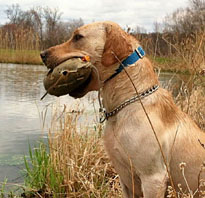 | Rangers level of training House Trained -Very Good Basic Obedience-Very Good Ecollar Trained-Done Force Fetch Trained-Done Intruduced to birds-Good Gun Fire Goose Decoys and blinds Duck and goose calls Pile work-Good Sight Blinds Land Marks- Good Singles out to 200 yards Doubles out to 100 yards Water doubles |